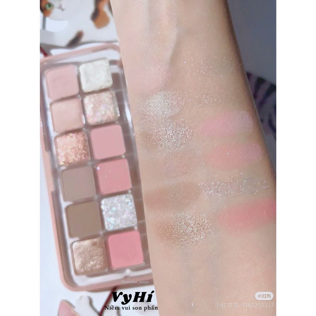 👉 Bảng màu 12 ô gồm chất nhũ và chất lì kết hợp hài hòa, phù hợp với nhiều phong cách khác nhau
