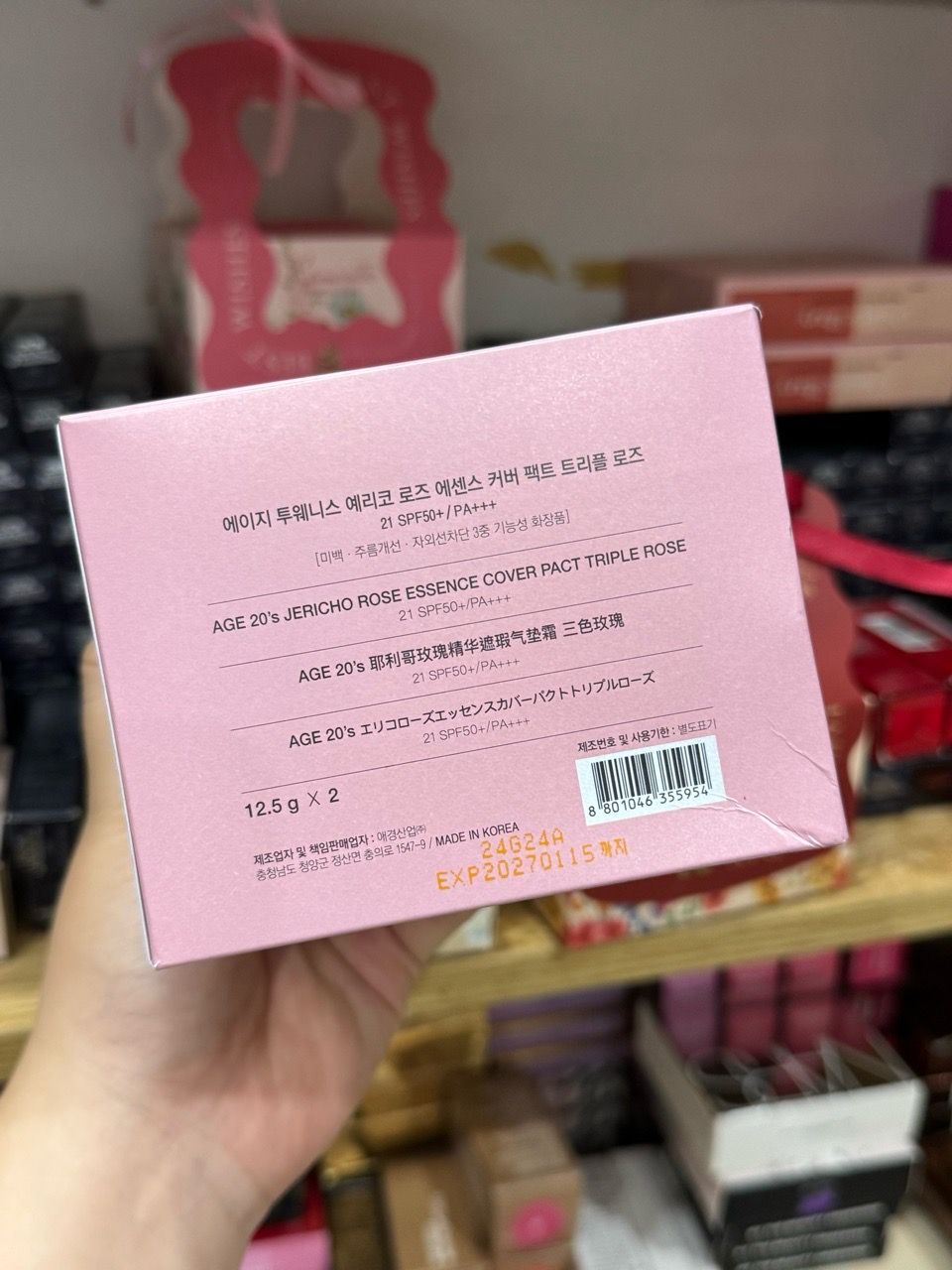 Cushion Age 20's limited VỎ HỒNG Jericho Rose Essence Cover Pact Triple Rose + lõi refill