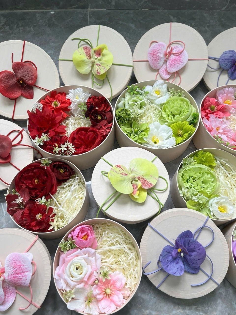 Hộp quà tròn HOA LỤA đường kính 17 cm