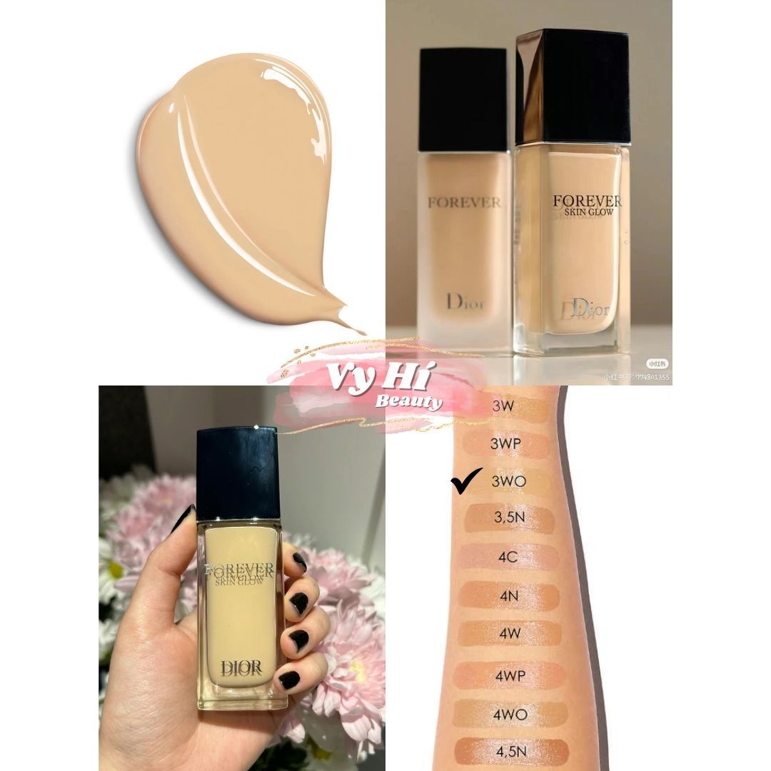Dior Forever Skin Glow Foundation SPF 15 có hơn 30 tông màu khác nhau, phù hợp cho mọi tông da từ sáng, trung bình đến ngăm. Các tông màu được chia thành nhóm Neutral (N), Warm (W), Cool (C) giúp bạn dễ dàng lựa chọn theo undertone da.