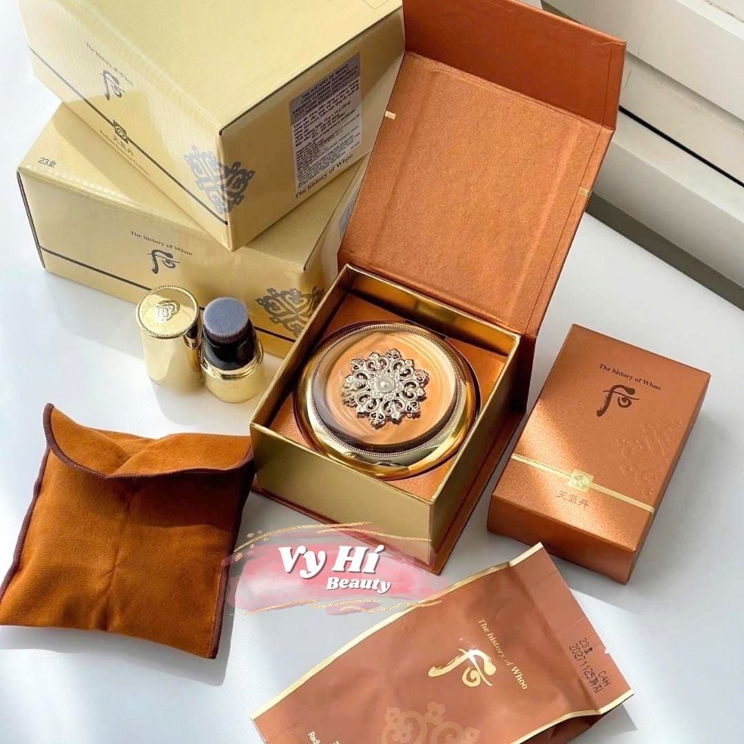 Set cushion Whoo Radiant Essence 15g kèm lõi refill + 1 cọ tán + 1 bao đựng