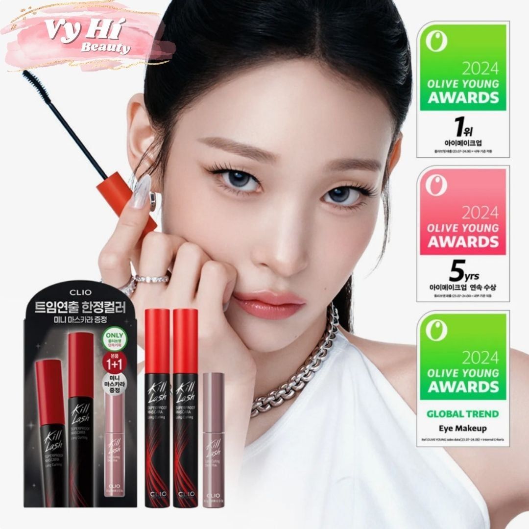Set mascara Clio Kill Lash Superproof 2 cây full size màu 01 + 1 mascara mini màu DEEP PINK