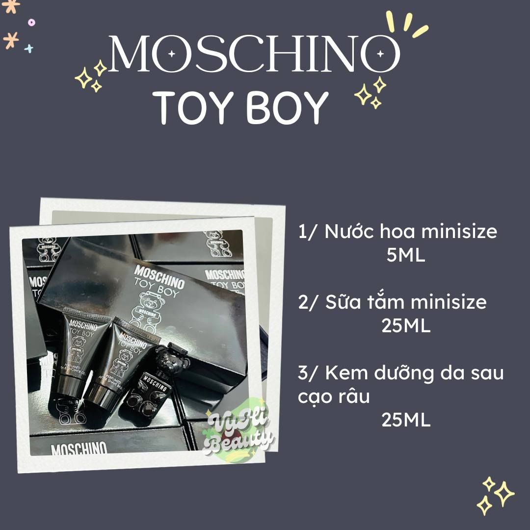 Set Moschino Toy Boy Gấu Đen gồm 1 nước hoa 5ml + 1 sữa tắm 25ml + 1 dưỡng da vùng cạo râu 25ml