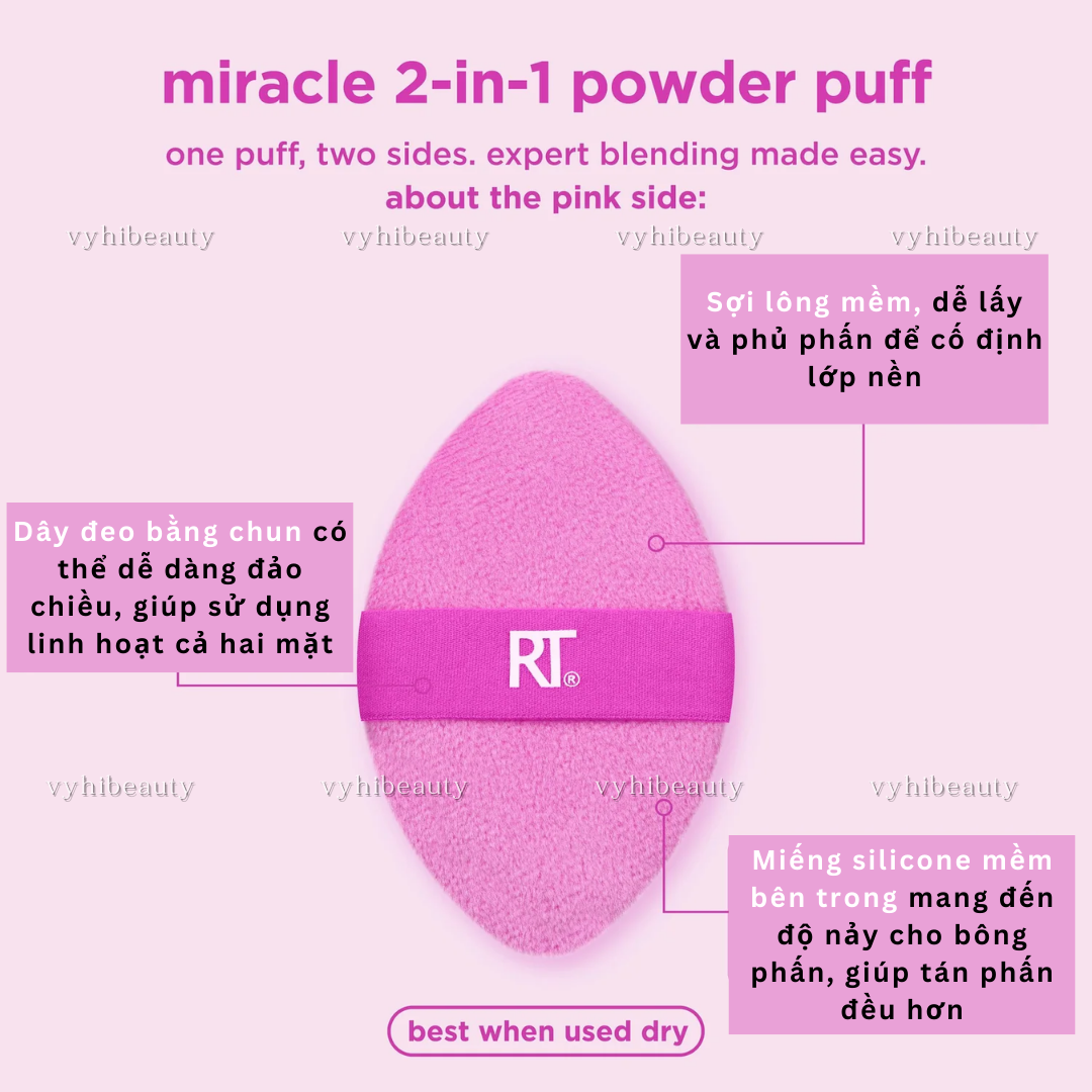 Set mút trang điểm Real Techniques Miracle 2-in-1 Powder Puff Duo gồm 2 mút (mỗi mút 2 mặt)