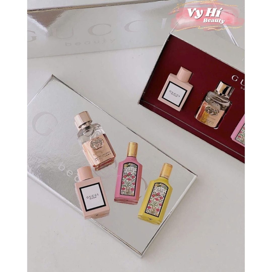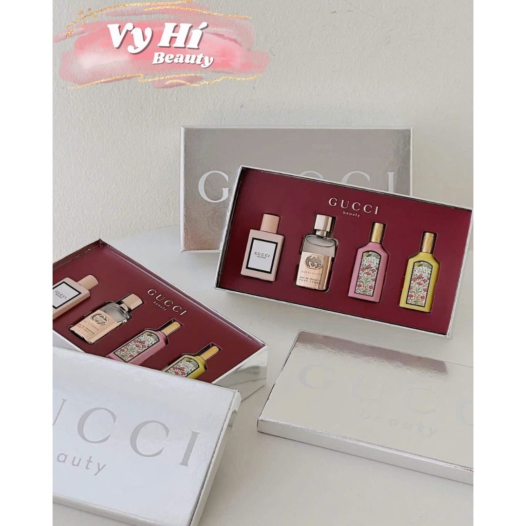 Set nước hoa Gucci 4 chai mini x 5ml Full box màu bạc đem tặng cực kì oke luôn