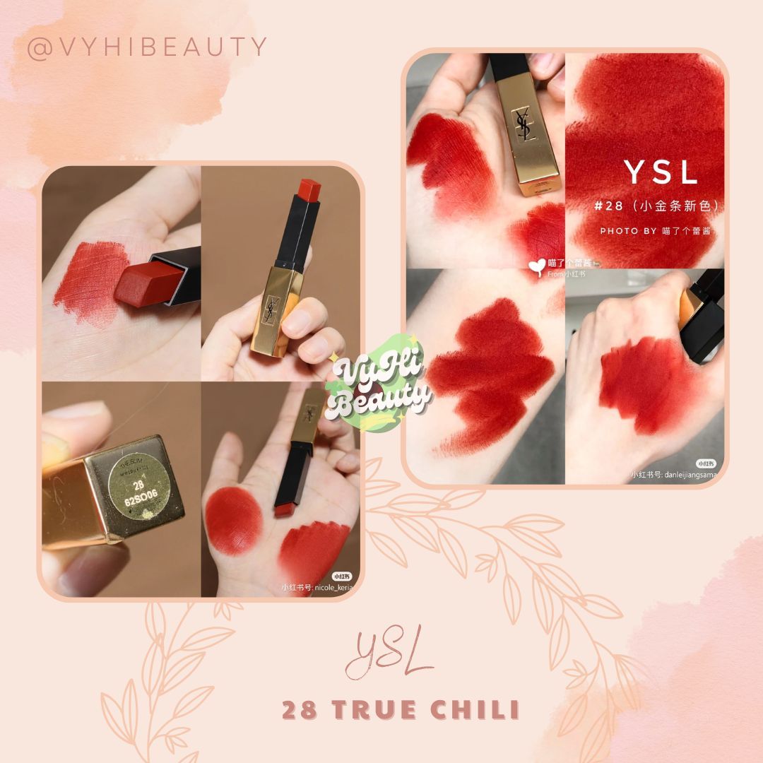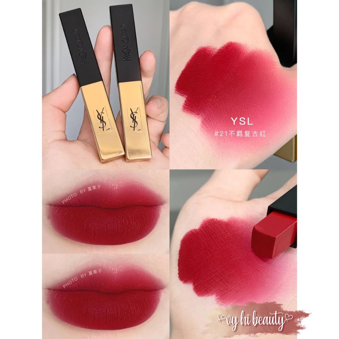 Chất son được đánh giá là nhẹ môi, pigmented và mịn lỳ, tạo cảm giác đánh “như không đánh son”. Chẳng còn sợ son lem, trôi hay khó đánh bởi son lì YSL này lên màu chuẩn rực rỡ, không gây khô môi mà còn bền màu được cả ngày dài.