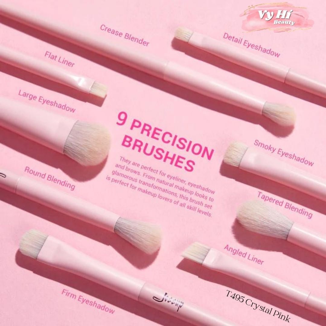 Tách set cọ Jessup T495 Crystal Pink Premium Vegan 14 cây
