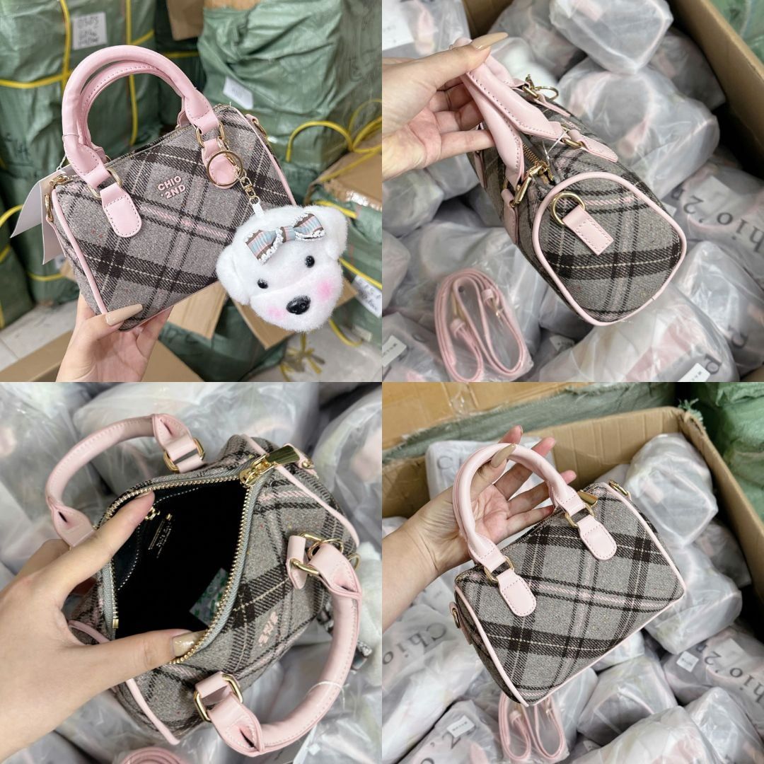 Túi Chio2nd dạ hồng 19cm kèm charm cún trắng