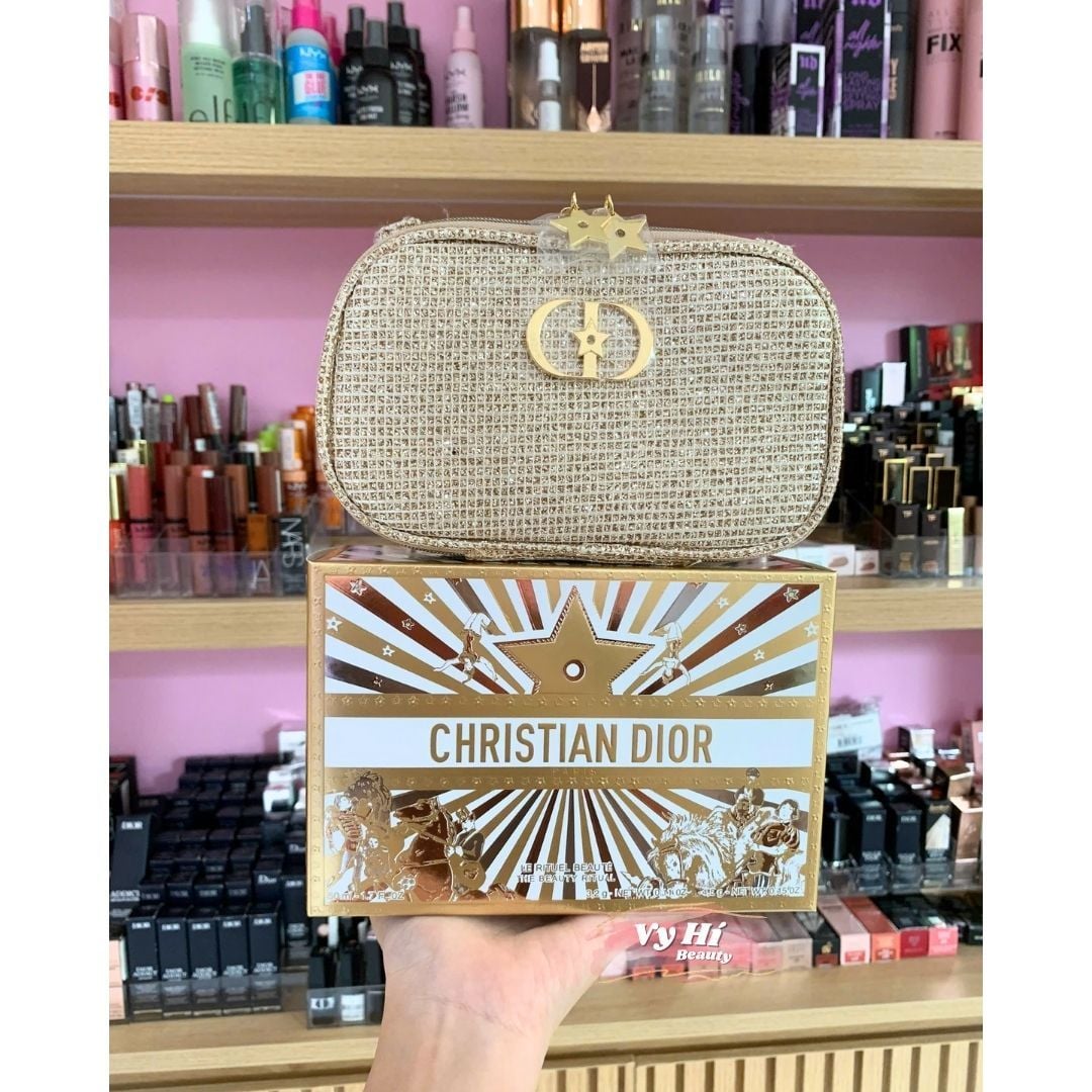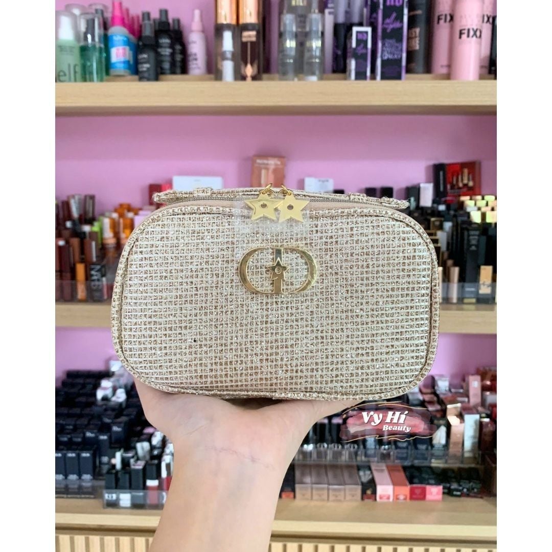 Túi đựng makeup Dior Holiday 2025 DÁNG CHỮ NHẬT + BOX NGÔI SAO VÀNG 18 x 14 x 6 cm
