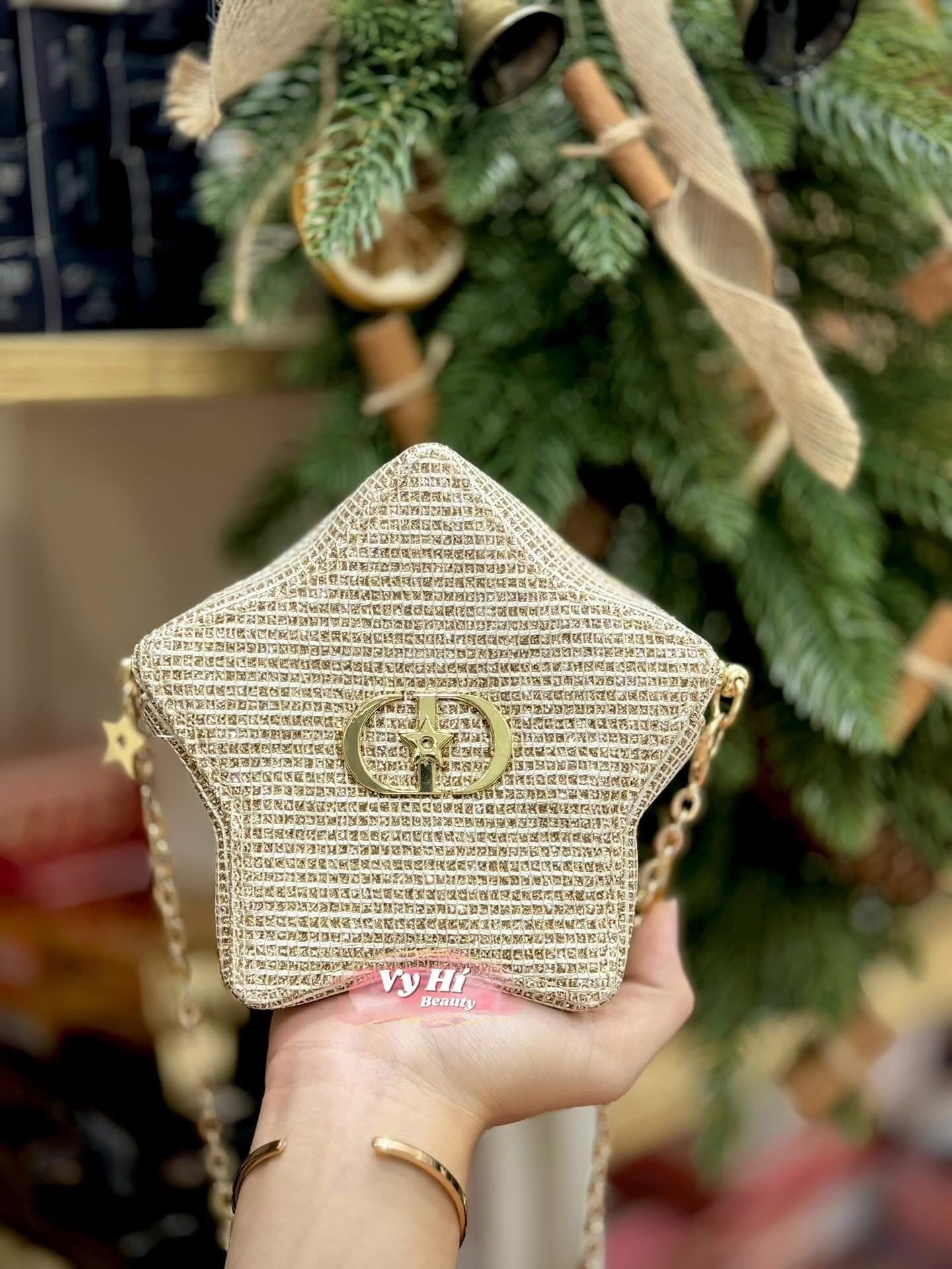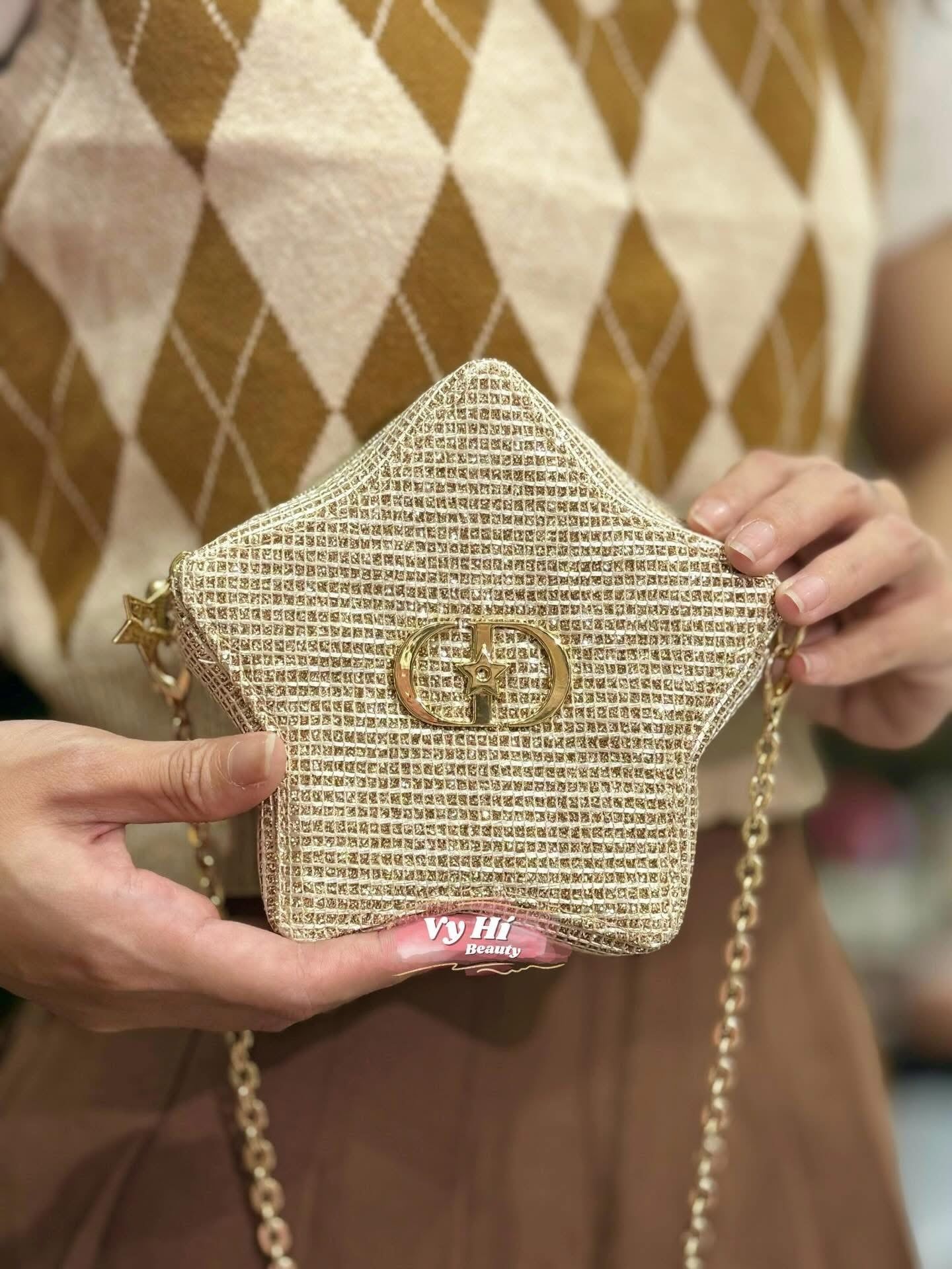 Túi đựng makeup Dior Holiday 2025 DÁNG NGÔI SAO + BOX NGÔI SAO VÀNG 18 x 14 x 6 cm