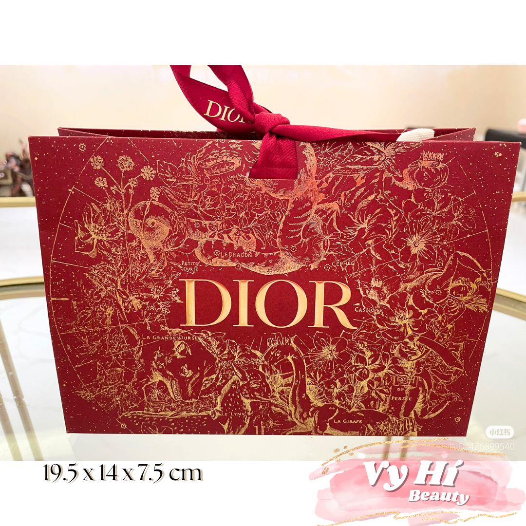 Túi giấy Dior đỏ họa tiết động vật kèm nơ đỏ 19.5 x 14 x 7.5 cm