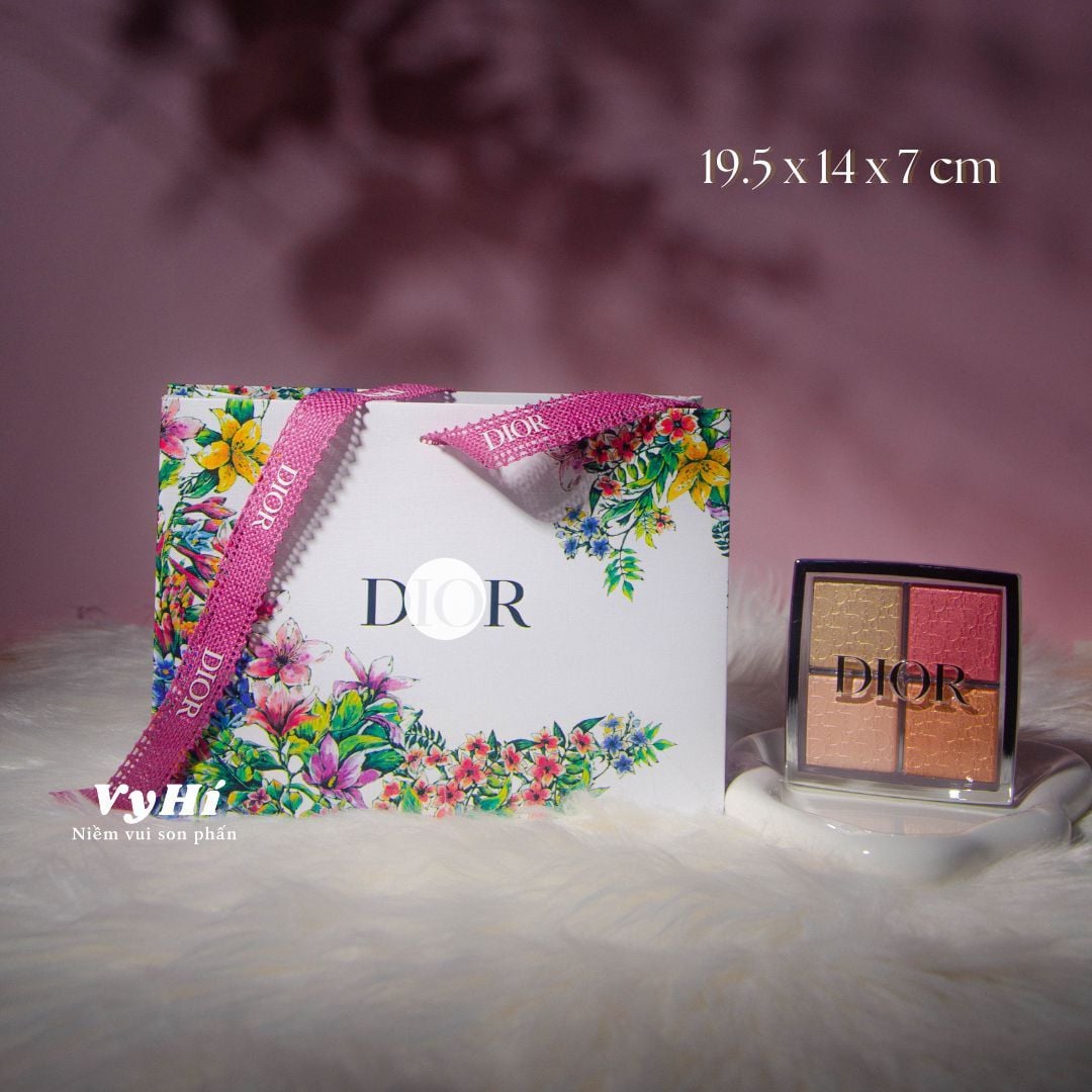 Túi giấy Dior hoạ tiết hoa hồng nơ hồng size 19.5 x 14 x 7 cm