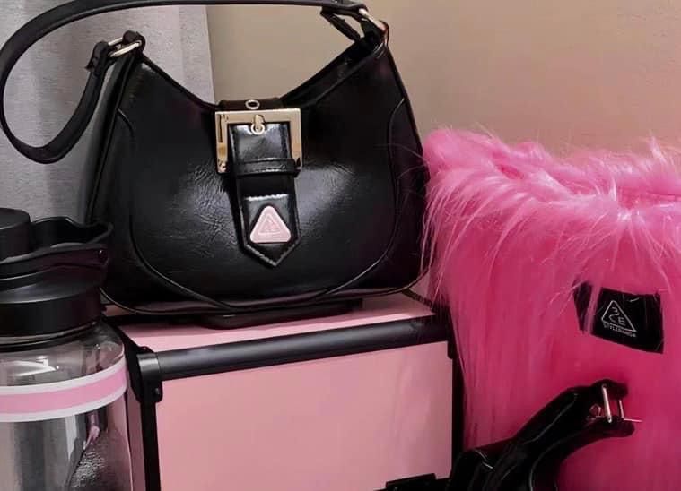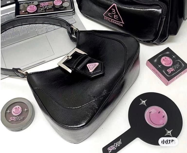 Túi gift 3CE da đen bóng siêu cá tính