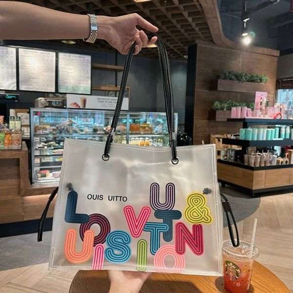 Túi LV nhựa trong kèm túi vải rút 38 x 32cm