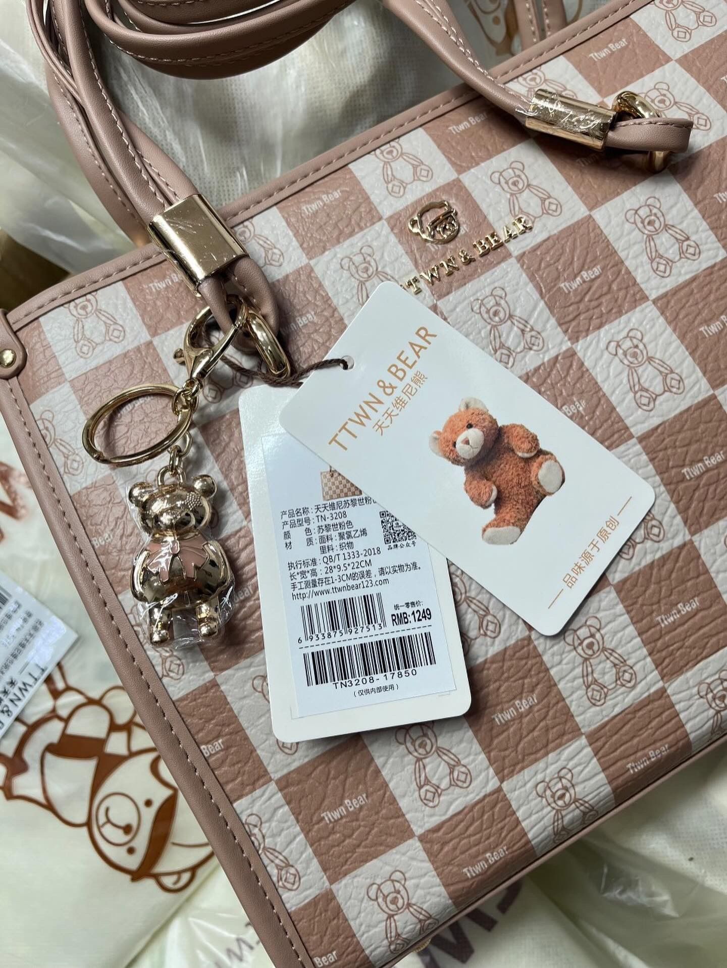 Túi TTWN hồng kèm keychain 28 x 22 x 9.5 cm